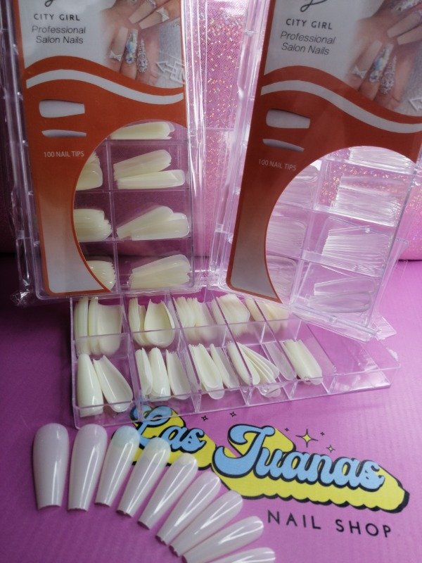 Tips Coffin largas para sistema Press On ó Soft x100u City Nails. enumeradas.